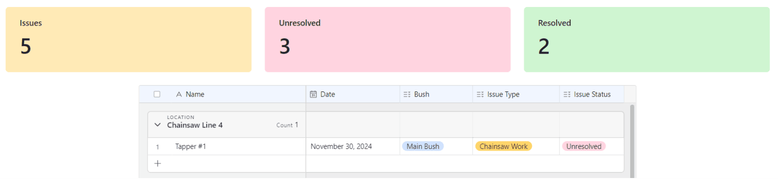 monitor seasonal tapping progress, track issues and manage tasks
