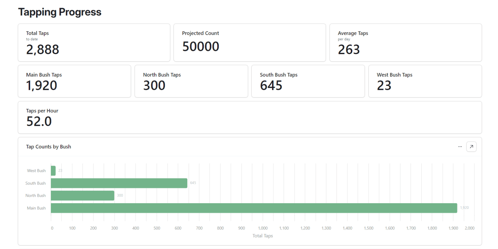 • Bush Maps: mark areas of concern and track tapping progress